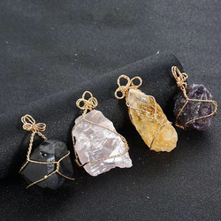 Großhandel Natur kristall Anhänger Heilung Kristall Rauer Stein Unregelmäßige Roh kristall Draht Wrap Anhänger Halskette